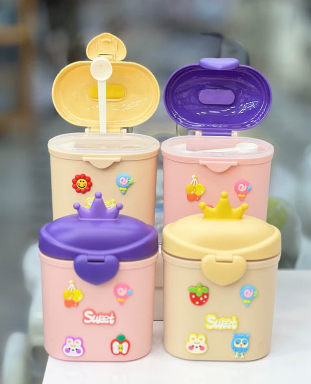 ظرف ذخیره شیرخشک طرح تاج در دو رنگ دوست داشتنی.