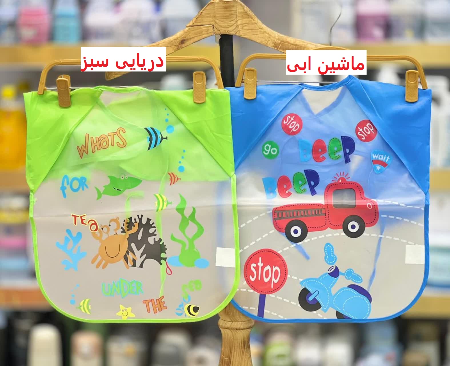اگر موقع غذا خوردن نوزادتون همیشه لباسهاش کثیف میشه، با پیشبند آستیندار ضدآب میتونید خیال خودتون رو راحت کنید. این پیشبند کاربردی تمام قسمت جلوی بدن و آستینهای کودک رو میپوشونه و مانع لک شدن لباسها میشه.