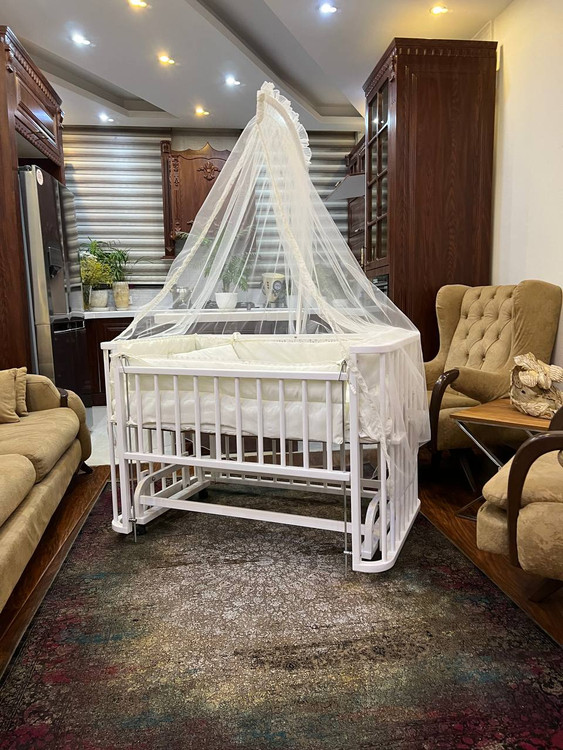 ست سرویس خواب کامل شامل: تشک – بالش – لحاف – تور بالای تخت – محافظ دور تخت
