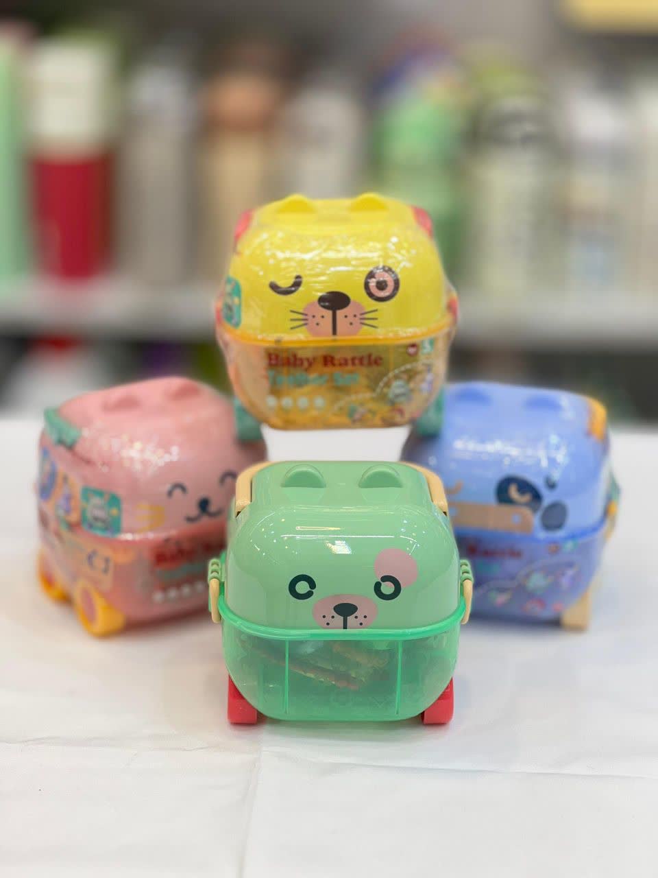 جعبه ها دارای طرح حیوانات و رنگهای متنوع است و برای نوزاد دختر و پسر می توانید مدل مناسب را تهیه کنید. این جعبه دارای چرخ نیز می باشد و به صورت یک اسباب بازی جداگانه نیز می تواند مورد استفاده قرار بگیرد.