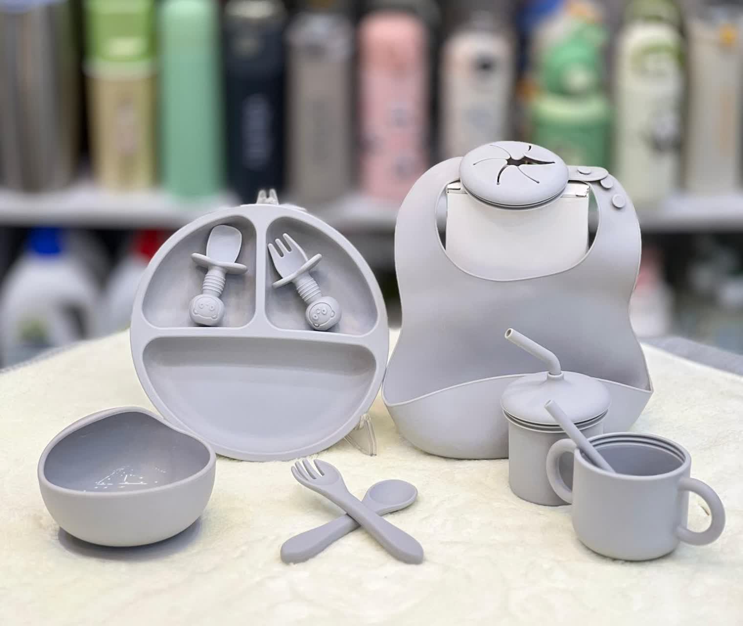 ست ظرف غذا سیلیکونی 13 تکه با قاشق و چنگال پستونکی مجموعهای ایمن و کاربردی برای تغذیه کودکان بالای ۶ ماه است. این ست شامل بشقاب چسبان، کاسه چسبان، پیشبند کاسهدار، لیوان دستهدار با نی، لیوان با درپوش و نی، و قاشق و چنگال سیلیکونی و قاشق چنگال پستونکی است. با جنس سیلیکونی و نشان BPA Free، این محصول انتخابی ایدهآل برای والدینی است که به دنبال ظروف ایمن و شیک برای سیسمونی هستند.